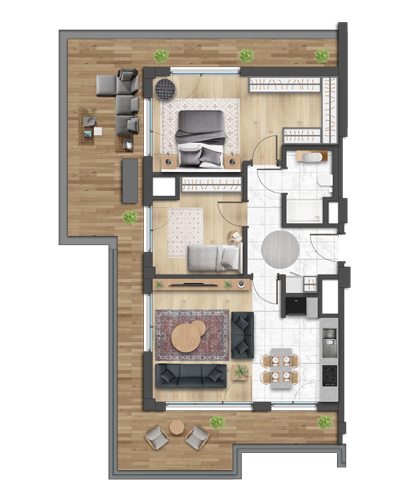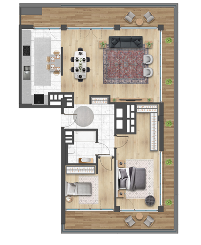 3-room studio apartments are especially suitable for small families or those who want to create a personal workspace at home. "Ağdam Rezidens" has allocated 30 3-room studio apartments within the complex, considering those looking for more private space in compact and modern conditions.